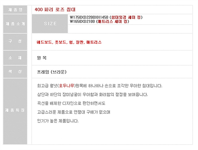 400파리로즈침대